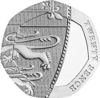 - 20p Brilliant Uncirculated, moneta posiada stop miedzionikiel, wagę 5 gramów, średnicę 21.40 mm, nominał 20p.