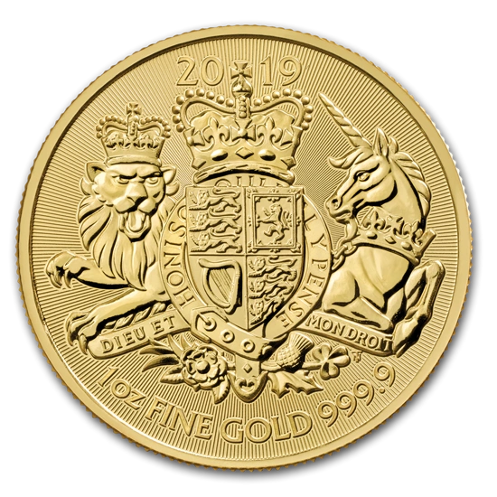 Moneta bulionowa "The Royal Arms" to propozycja mennicy Royal Mint na 2019 rok. Moneta wybita z czystego złota najwyższej próby (999,9) waży 1 uncję i jest to niewątpliwie ciekawy okaz kolekcjonerski.
