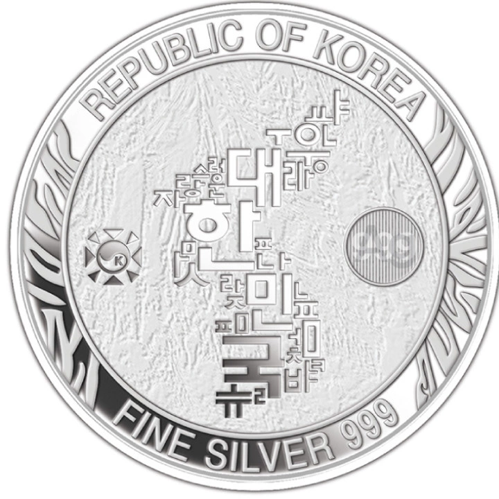 Sul dritto del prodotto è raffigurato l'alfabeto Hangul, che forma la sagoma della penisola coreana. A sinistra è riportato il logo del produttore, mentre a destra è presente una protezione con effetto angolare e le informazioni sul paese di emissione e sulla purezza del metallo.