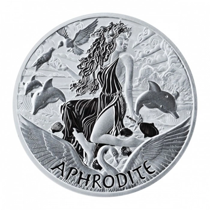 La moneta d'argento da investimento raffigurante Afrodite è un prodotto realizzato in metallo puro con titolo Ag.9999, del peso di un'oncia troy e del diametro di 40,9 mm. La moneta Afrodite 2022 è la sesta della serie Dei dell'Olimpo. La moneta è garantita dal governo di Tuvalu ed è un mezzo di pagamento a tutti gli effetti nel paese. È importante sottolineare che si tratta di un esemplare in argento con una tiratura rigorosamente limitata a 13.500 pezzi. Vale quindi la pena interessarsi a questa moneta e all'intera serie.
