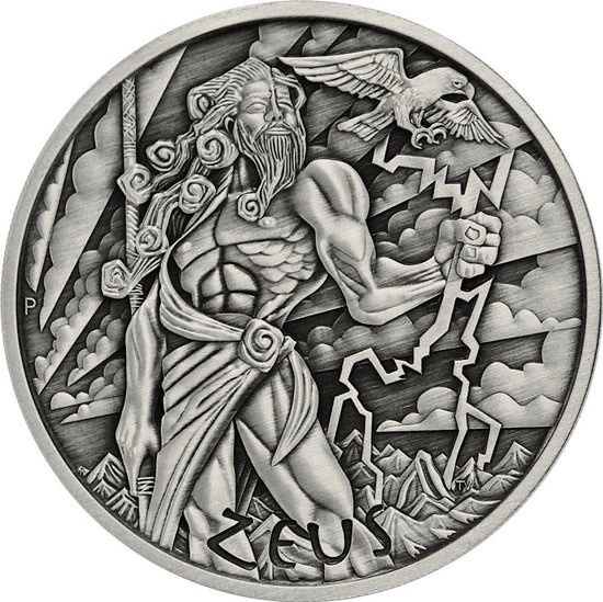 Srebrna moneta bulionowa "Bogowie Olimpu - Zeus „Antiqued Finish”" to produkt wykonany z czystego kruszcu próby 9999, o wadze pięciu uncji trojańskich oraz o wykończeniu „Antiqued Finish”. Wspomniana moneta posiada gwarancję rządu Tuvalu oraz stanowi pełnoprawny środek płatności na terenie tego kraju. Co ważne, 5 uncjowy Zeus "Antiqued Finish”" posiada ściśle limitowany nakład, liczący 50 sztuk! Do każdej sztuki jest dołączany certyfikat autentyczności.