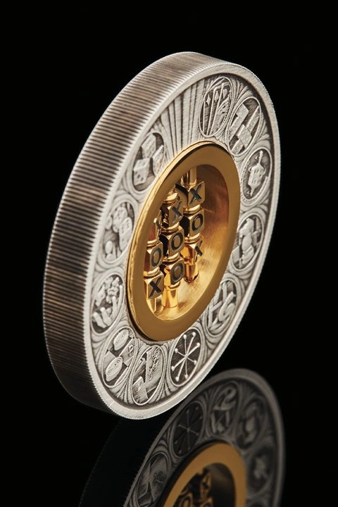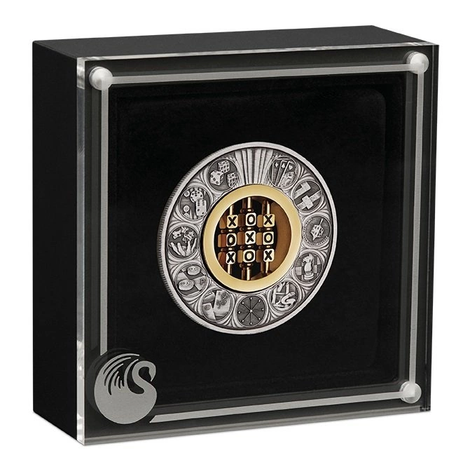 Il rovescio presenta cerchi e croci girevoli dorati. Inoltre, sono raffigurati alcuni giochi famosi come i dadi, le carte e gli scacchi. Sul rovescio è presente anche il marchio di zecca The Perth Mint - “P”.