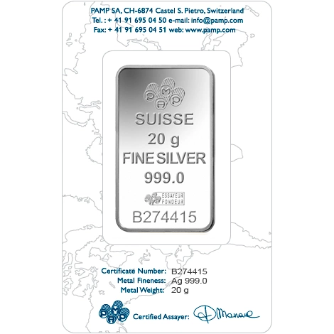20 gramów Sztabka Srebra Pamp Suisse Róża