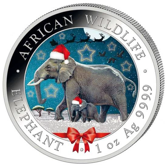 African Wildlife: Słoń Somalijski kolorowany 1 uncja Srebra 2022 (Śnieżna Kula)