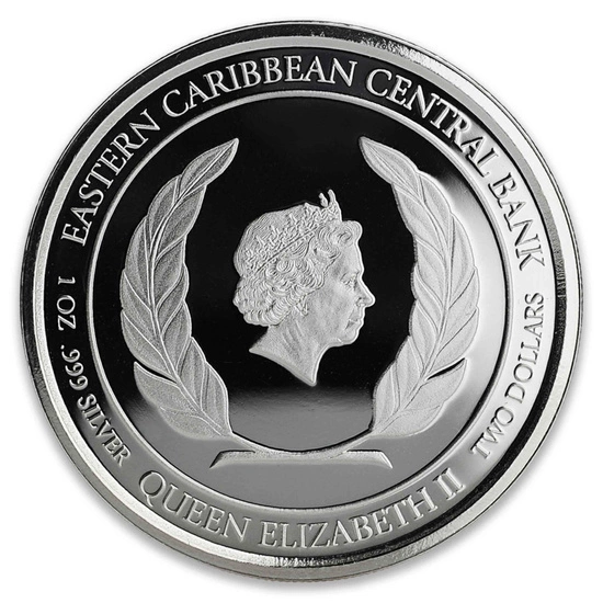 Awers srebrnej monety przedstawia podobiznę Królowej Elżbiety II oraz napisy "QUEEN ELIZABETH II" i "EASTERN CARIBBEAN CENTRAL PARK". Na awersie znajduje się także informacja o wadze, czystości kruszcu i wartości nominalnej monety. Projektantem awersu był Ian Rank-Broadley.