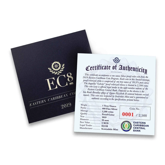 Walor został wybity z czystego kruszcu próby Ag.999, o wadze jednej uncji trojańskiej i średnicy wynoszącej 39mm, w standardzie proof. Srebrna moneta została wyprodukowana przez mennicę Scottsdale Mint, w niskim nakładzie liczącym jedynie 2500 sztuk. Produkt jest prawnym środkiem płatniczym na terytoriach Anguilli i Grenady oraz posiada gwarancję Centralnego Banku Wschodnich Karaibów. Walor został umiejscowiony w oryginalnym opakowaniu wraz z numerowanym certyfikatem autentyczności.