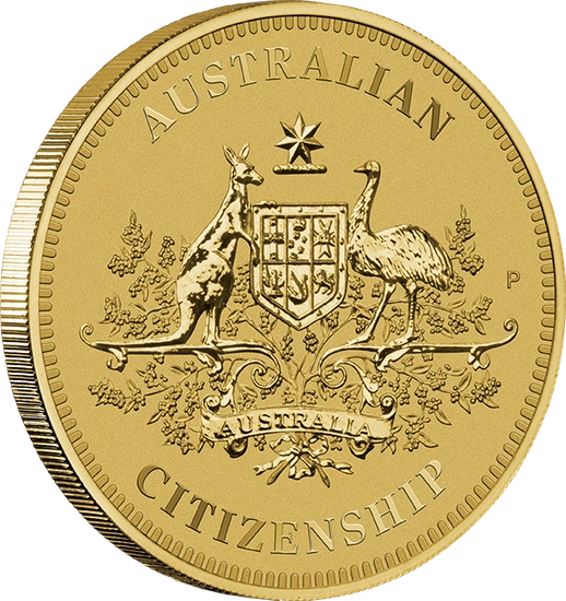 Rewers przedstawia herb Australii oraz napis "AUSTRALIAN CITIZENSHIP". Na rewersie znajduje się grawerowana litera "P", oznaczająca mennicę The Perth Mint.