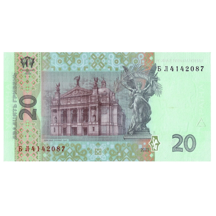 Banknot Ukraina 20 Hrywien (20 UAH) Obiegowy to istotny element ukraińskiej waluty, będący powszechnie używaną jednostką płatniczą. Wydany przez Narodowy Bank Ukrainy, łączy w sobie walory estetyczne oraz funkcjonalność, spełniając rolę zarówno środka płatniczego, jak i interesującego obiektu kolekcjonerskiego. Banknot o wymiarach 130 × 65 mm wyraża uznanie dla ukraińskiego dziedzictwa i narodowej tożsamości.