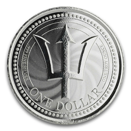 Na rewersie został ukazany Trident wraz z informacją o wadze, próbie kruszcu i wartości nominalnej.