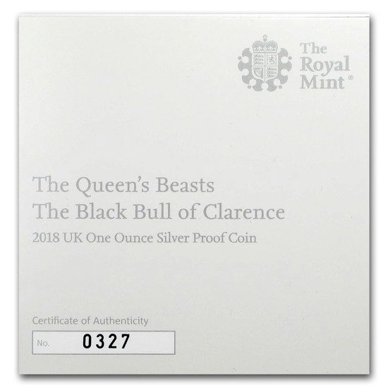 Bestie Królowej: Czarny Byk z Clarence (The Queen’s Beasts 2018: The Black Bull of Clarence) 1 Uncje Srebra PROOF 2018 rok