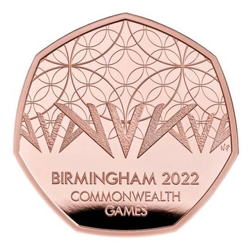 Rewers monety przedstawia geometryczne wzory, które znajdują się na bibliotece Birmingham. Dodatkowo, rewers zawiera napis "BIRMINGHAM 2022 COMMONWEALTH GAMES". Projektantką rewersu była Natasha Preece.