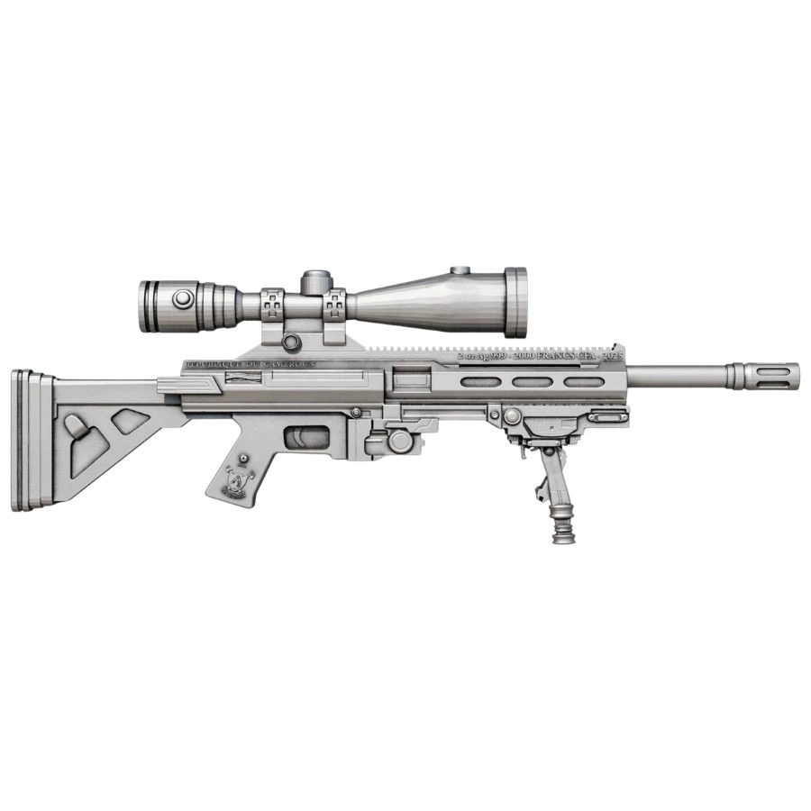 Każdy egzemplarz skrywa się w zabezpieczonym, eleganckim drewnianym pudełku, które zawiera jedną z trzech wyjątkowych wersji monety w kształcie stylizowanego karabinu. Realistyczne odwzorowanie detali nadaje jej wyrazisty charakter i podkreśla tematykę serii.