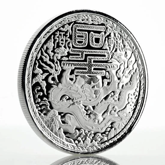 Na rewersie został przedstawiony smok oraz chińskie napisy oznaczające w języku polskim "cesarski majestat" oraz "wspierać".