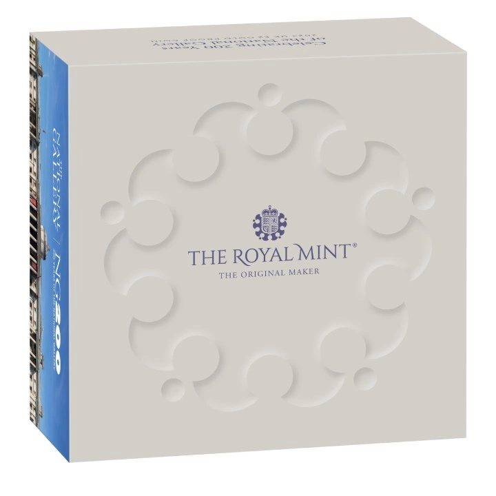 Celebrating 200 Years of the National Gallery £2 Złoto 2024 Proof 200. rocznicę National Gallery w Londynie. Galeria Narodowa to jeden z najważniejszych i najbardziej prestiżowych muzeów sztuki na świecie. Znajduje się w centrum Londynu, przy Trafalgar Square, i posiada bogatą kolekcję dzieł sztuki europejskiej, w tym malarstwa, rzeźby, grafiki i fotografii, sięgającą od średniowiecza do współczesności. Galeria została założona w 1824 roku i od tego czasu jest dostępna dla publiczności, promując sztukę jako dziedzictwo narodowe. Jej zbiory obejmują dzieła takich mistrzów jak Leonardo da Vinci, Vincent van Gogh, Rembrandt.