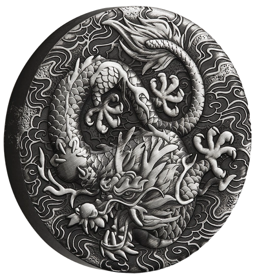 Chinese Myths and Legends: Dragon 2 uncje Srebra 2022 Antiqued Coin