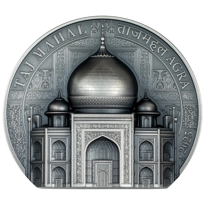 Cook Islands: Historical Monuments - Taj Mahal 5 uncji Srebra 2025 Antiqued Coin to wyjątkowa moneta kolekcjonerska, która oddaje hołd jednej z najbardziej rozpoznawalnych budowli na świecie – Taj Mahal. Ta niezwykle szczegółowa moneta stanowi doskonałe uzupełnienie kolekcji dla miłośników historii, sztuki i architektury.