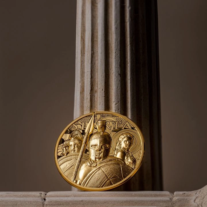 Złota moneta kolekcjonerska Cook Islands: Sparta 1 uncja Złota 2023 Proof Ultra High Relief o niezwykle ciekawy egzemplarz, który został wykonany z wielką dbałością o każdy szczegół. Walor może być uzupełnieniem kolekcjonerko-inwestycyjnego portfolio kupca.