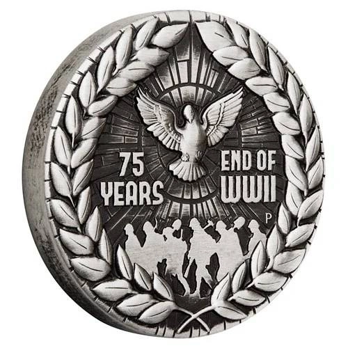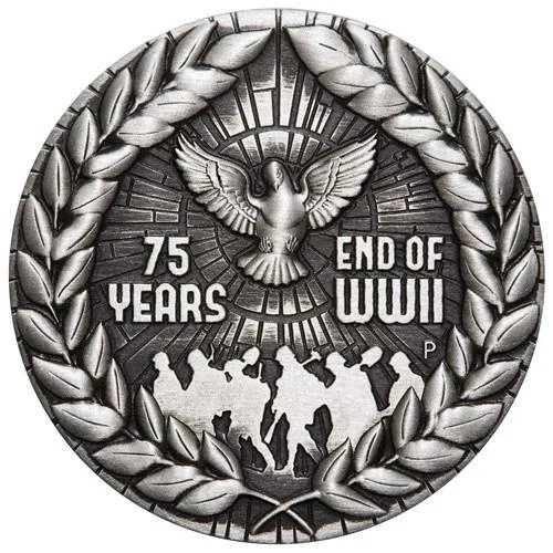 End of World War II 75. rocznica 2 uncje Srebra 2020 Antiqued Coin