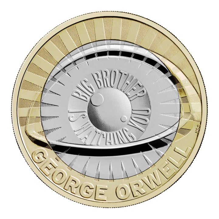 Rewers monety, zaprojektowany przez Henry'ego Graya, jest hołdem dla kluczowych tematów twórczości Orwella. Centralnym punktem jest kamera przypominająca oko, co nawiązuje do motywu totalitaryzmu z powieści "1984". Dookoła umieszczono napis "BIG BROTHER IS WATCHING YOU", a krawędź monety zdobi inskrypcja "THERE WAS TRUTH AND THERE WAS UNTRUTH", zaczerpnięta z tej samej książki.