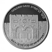 Golden Gate 1 uncja Srebra 2019 Proof to 5 moneta z serii "Gates of Jerusalem", która przedstawia "Złotą Bramę". Jest zwrócona w stronę Góry Oliwnej przy której znajduje się najbliższe miejsce, gdzie kiedyś stała Świątynia Jerozolimska.