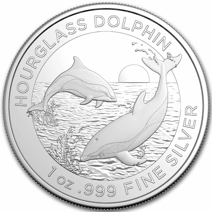 Produkt Hourglass Dolphin 1 uncja Srebra 2024 to szósta moneta pochodząca z urzekającej serii Australian Dolphin. Cała seria przedstawia najważniejsze oraz największe gatunki delfinów zamieszkujących cały glob. Walor z 2024 roku przedstawia delfinowca krzyżowego, który posiada unikalny wzór białych plam. Jest jedynym małym delfinem, który pływa na południe od konwergencji antarktycznej, gdzie zimne wody Antarktyki spotykają się z nieco cieplejszymi wodami subantarktycznymi.