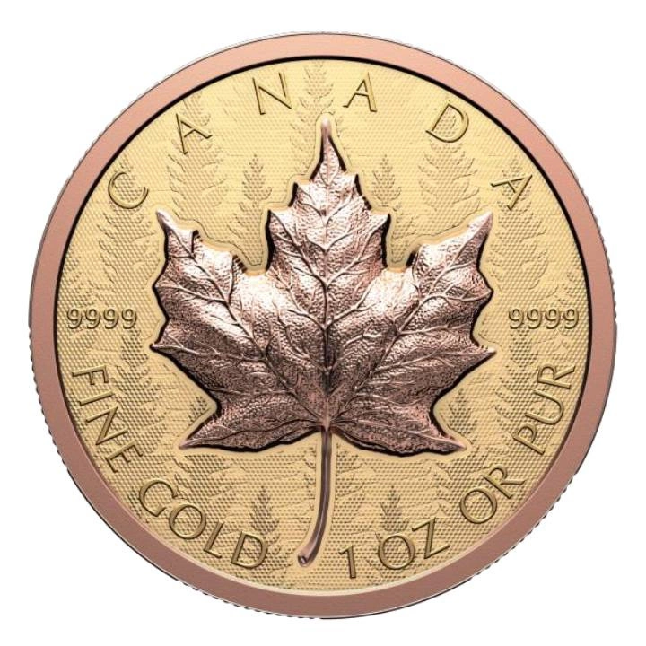 Na rewersie przedstawiono charakterystyczny liść klonowy w ultra-wysokim reliefie, otoczony pulsującym, leśnym tłem oraz platerowaniem z różowego złota, symbolizującym barwy kanadyjskiej jesieni. Projekt rewersu autorstwa Waltera Otta podkreśla bogactwo przyrody Kanady oraz jej narodową tożsamość.