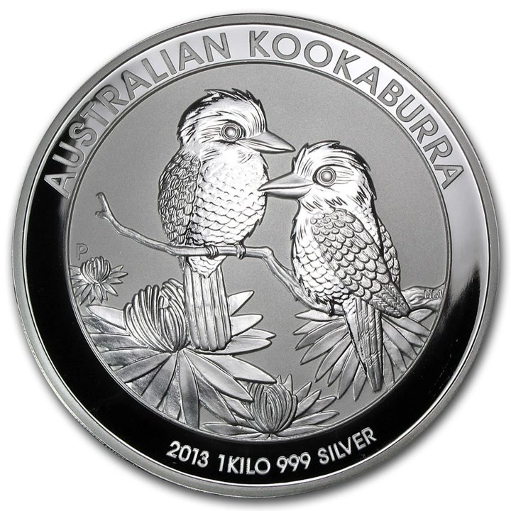 Srebrna moneta inwestycyjna Kookaburra 1000 gramów Srebra 2013 przedstawia tytułowego ptaka i należy do długoletniej serii srebrnych monet bulionowych o tej samej nazwie.
