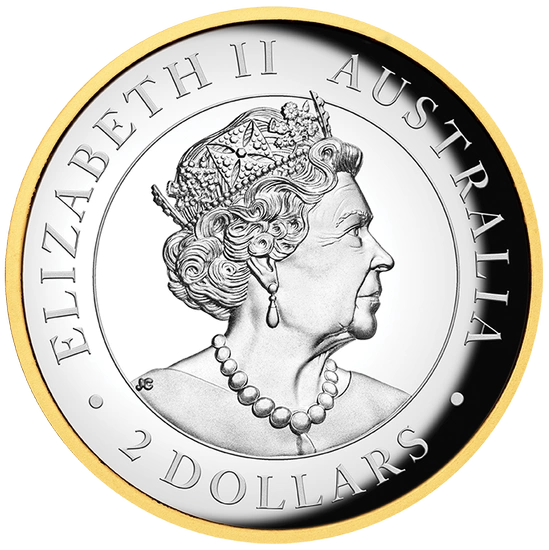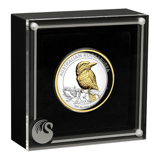 Kookaburra 2 uncje Srebra 2021 Proof High Relief Pozłacana