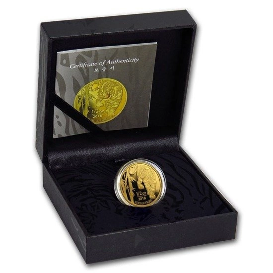 Seria Koreański Tygrys zapoczątkowana została w 2016 roku odnosząc ogromny sukces, początkowo seria była wybijana w złocie o wadzę 1/2 oraz 1/4 uncji złota, od 2018 zaczęto wybijać medale o wadzę 1 uncji. Złoty medal produkowany w Korei Południowej przez KOMSCO zawiera 99,99% złota i posiada wagę 1/2 uncji. Jest to trzeci i najnowszy złoty medal z serii posiadający certyfikat autentyczności. Całość znajduje się w ekskluzywnym etui.