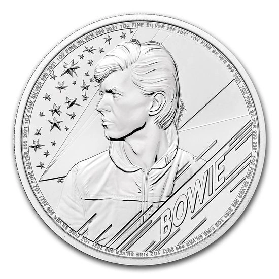 Srebrna moneta bulionowa David Bowie 1 uncja Srebra 2021 to trzeci egzemplarz pochodzący z niezwykłej serii Legendy Muzyki (Music Legends). Wspomniana seria jest hołdem dla artystów solowych oraz zespołów muzycznych, których legendarna muzyka łączy pokolenia.
