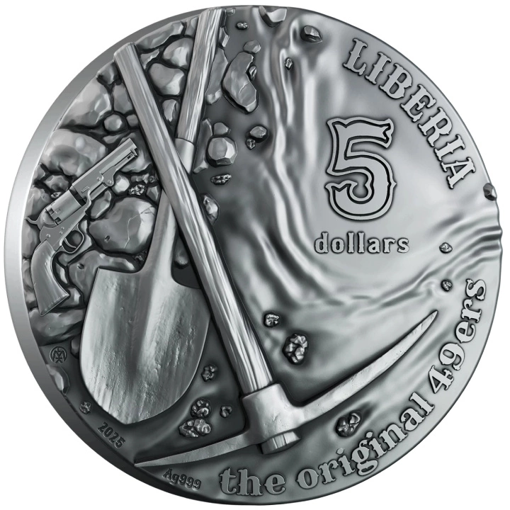 Liberia: California Gold Rush pozłacana $5 Srebro 2025 High Relief Antiqued Coin to wyjątkowa moneta upamiętniająca jeden z najważniejszych okresów w historii Stanów Zjednoczonych.