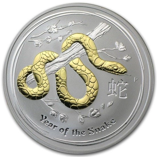 Lunar II: Rok Węża 1 uncja Srebra Platerowane złotem 2013