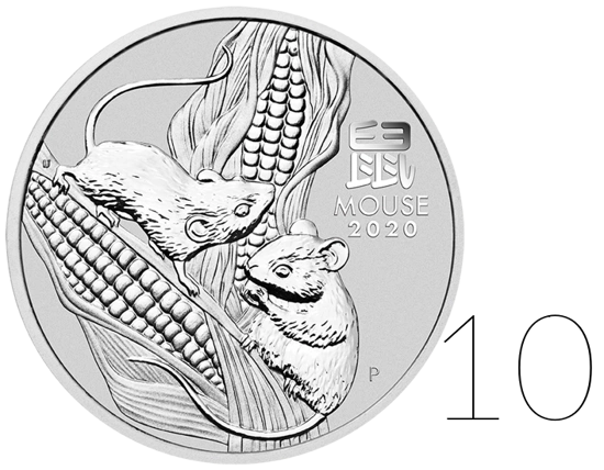 Srebrna moneta Rok Myszy to pierwszy egzemplarz z serii Lunar III emitowany przez australijską mennicę Perth Mint. Oferowany pakiet zawiera 10 monet, które są dostarczane w bezpiecznym, zbiorczym opakowaniu ochronnym.