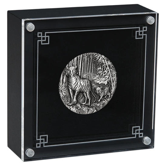 Srebrna moneta Rok Tygrysa to trzeci egzemplarz pochodzący z inspirowanej chińskim kalendarzem serii Lunar III. Jest to moneta, która została wybita z czystego srebra próby Ag.9999, o wadze dwóch uncji trojańskich, w standardzie antiqued.