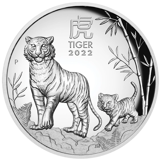 Rewers ukazuje dumnego, dorosłego tygrysa wraz z małym tygryskiem. Na rewersie znajduje się również chiński znak „tygrys”, napis „TIGER 2022” oraz litera "P", czyli znak mennicy The Perth Mint. Projektantką rewersu była Jennifer McKenna.
