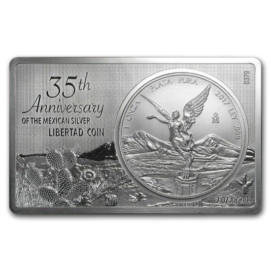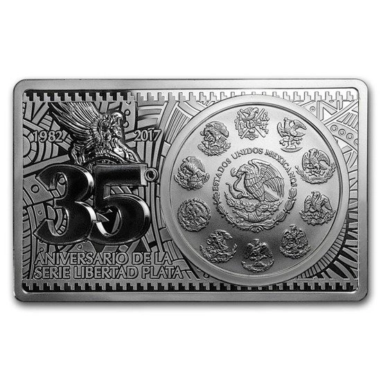 Jubileuszowe wydanie słynnej monety bulionowej - Meksykańska Bogini Wolności z roku 2017 wyróżnia się unikatowym wykonaniem.Trzydzieste piąte wydanie to zestaw złożony z jedno-uncjowej srebrnej monety umieszczonej w dwu-uncjowej sztabce srebra.