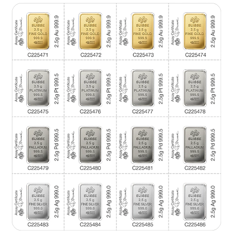 Multigram 4 x 2,5 grama Sztabka Złota, 4 x 2,5 grama Sztabka Platyny, 4 x 2,5 grama Sztabka Palladu, 4 x 2,5 grama Sztabka Srebra