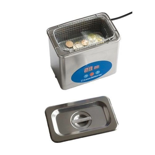Profesjonalna myjka ultradźwiękowa ze stali nierdzewnej do delikatnego czyszczenia monet, medali, okularów, biżuterii, aparatów ortodontycznych, protez zębowych, soczewek okularowych z tworzywa sztucznego oraz innych małych przedmiotów z domu, pracowni, czy warsztatu. Pokryty dodatkową gumą koszyk zapewnia ochronę Państwa przedmiotów. Usuwa tłuszcz, odciski palców i inne typowe zanieczyszczenia. Urządzenie czyści przy pomocy wody. Dla lepszej skuteczności polecamy specjalne środki do czyszczenia dostępne w naszej ofercie.