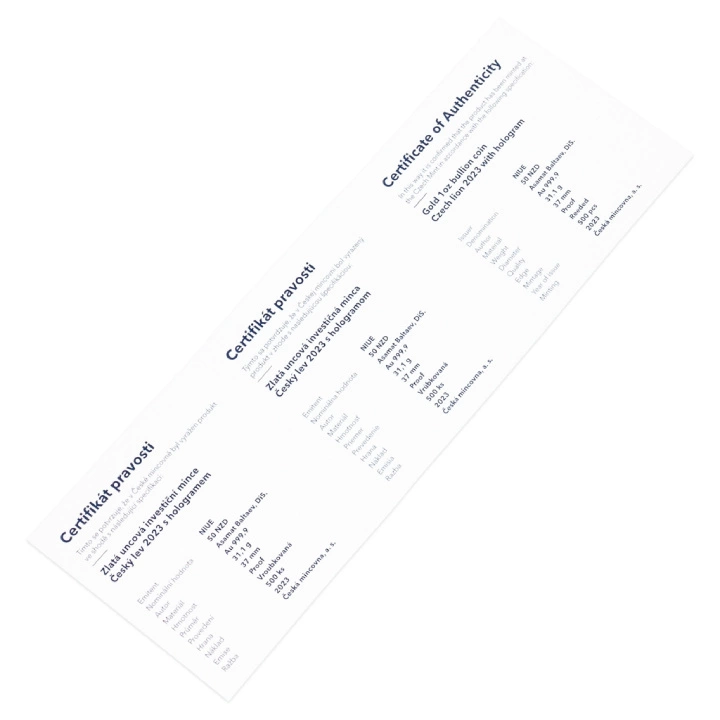 Niue: Czech Lion 1 uncja Złota 2023 Proof z Hologramem