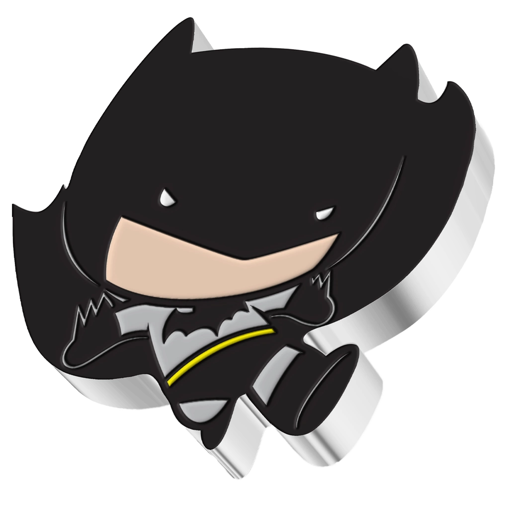 Batman Flying Chibi Coin kolorowany 1 uncja Srebra 2021 Proof to moneta wydana w ramach serii DC Comics – Chibi Coins. Moneta upamiętnia postać Batmana w charakterystycznym stylu Chibi, czyli z dużą głową i stosunkowo małym ciałem, co nadaje postaci uroczy i zabawny wygląd. Moneta została wybita z jednej uncji 99,9% srebra w jakości proof przez New Zealand Mint. Limitowana emisja wynosi 2 000 sztuk na całym świecie, a każdy egzemplarz jest dostarczany w oryginalnym pudełku wraz z certyfikatem autentyczności.