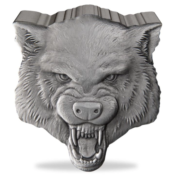 Niue: Fierce Nature - Wolf 2 uncje Srebra 2023 Antique Finish to srebrny, bulionowy egzemplarz z serii "Fierce Nature", który przedstawia głowę wilka. Ta wyjątkowa emisja posiada ściśle limitowany nakład liczący jedynie 2 000 sztuk.