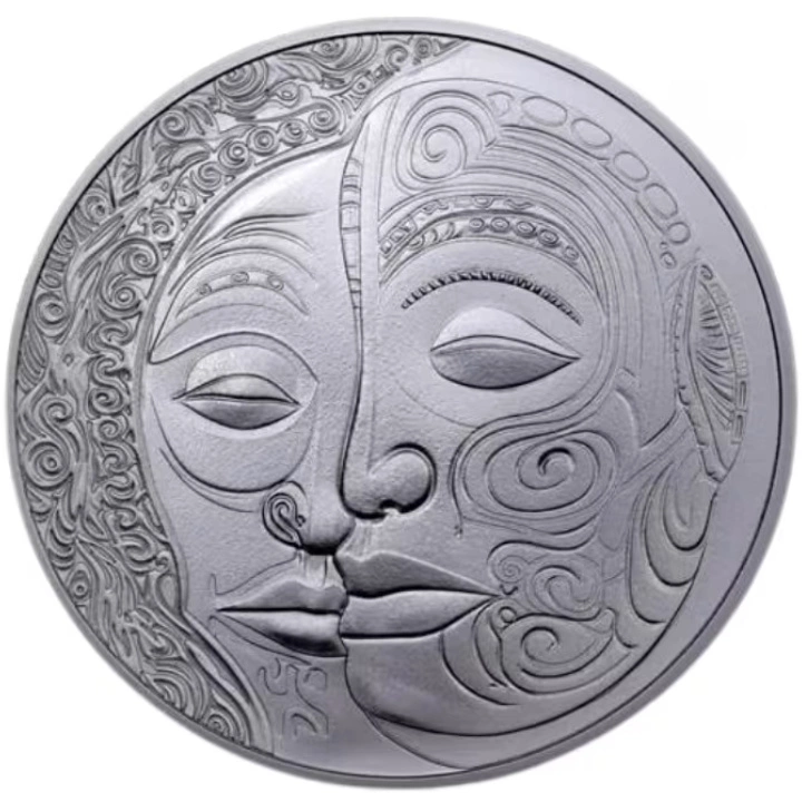 Srebrna moneta Niue: Maori 1 uncja Srebra 2024 Prooflike to wyjątkowy produkt inspirowany bogatą kulturą rdzennych mieszkańców Nowej Zelandii. Walor prezentuje postacie - Rangi i Papa - Ojciec Niebo i Matka Ziemia, z których według wierzeń Māori narodził się wszechświat. Ich mit o stworzeniu opowiada historię głębokiej, lecz tragicznej miłości między Ziemią a Niebem.
