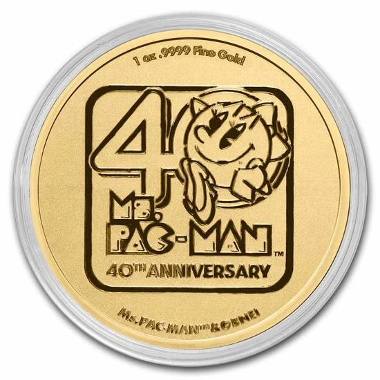 Niue: Ms.PAC-MAN 40. rocznica 1 uncja Złota 2021 to kolekcjonerska moneta upamiętniająca kultową, zręcznościową grę wideo. Ms.PAC-MAN została stworzona przez Midway w 1981 roku. Ms.PAC-MAN różni się od PAC-MAN'a tym, że w roli głównej występuje postać płci żeńskiej.