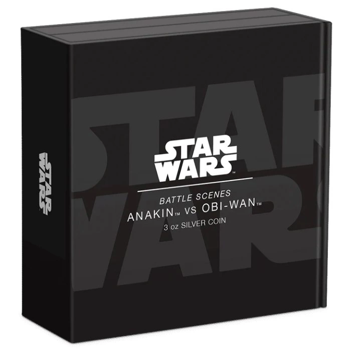 Niue: Star Wars Battle Scenes - Anakin vs. Obi-Wan kolorowany 3 uncje Srebra 2022 Proof to moneta, która stanowi nie lada gratkę dla kolekcjonerów oraz fanów Gwiezdnych Wojen, którzy szukają pewnej i sprawdzonej inwestycji. Egzemplarz nawiązuje do walki z trzeciej części filmu "Gwiezdne Wojny: Zemsta Sithów" z uniwersum Star Wars.