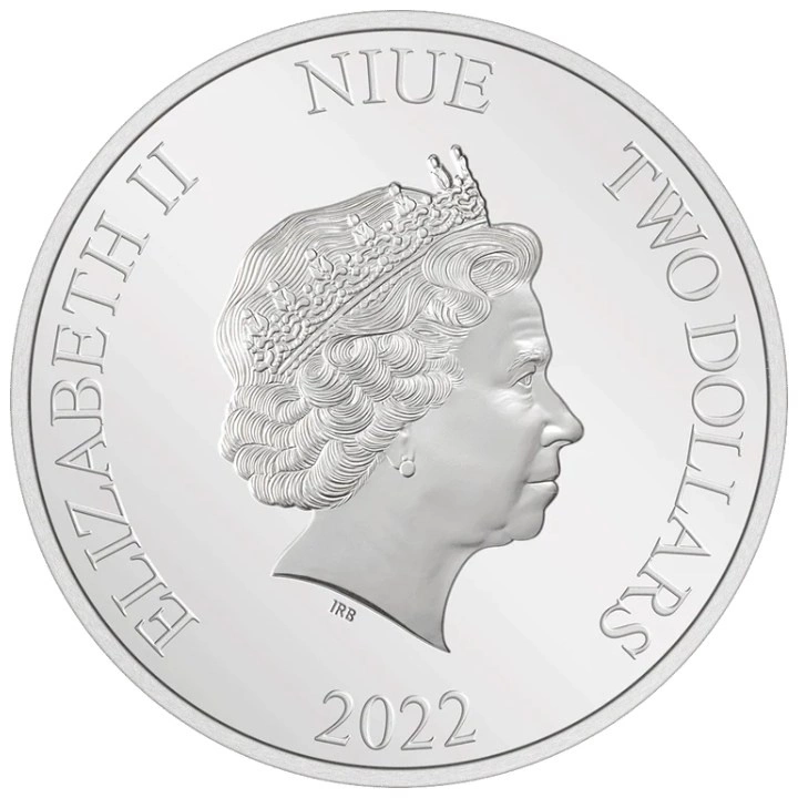 Awers srebrnej monety przedstawia wizerunek Królowej Elżbiety II, napis "ELIZABETH II", "NIUE" oraz wartość nominalną oraz rok emisji waloru. Projektantem awersu był Ian Rank-Broadley.