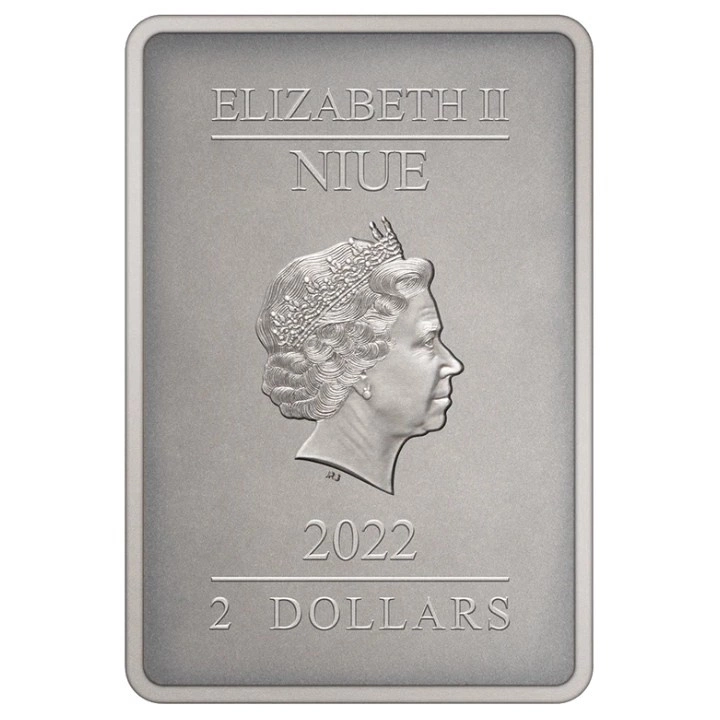 Awers srebrnej monety przedstawia wizerunek Królowej Elżbiety II, napis "ELIZABETH II", "NIUE" oraz wartość nominalną oraz rok emisji waloru. Projektantem awersu był Ian Rank-Broadley.