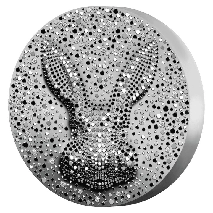 Rewers ukazuje głowę królika i zawiera małe lusterka oraz kryształy Swarovskiego®, z których każde przedstawia kroplę wody.