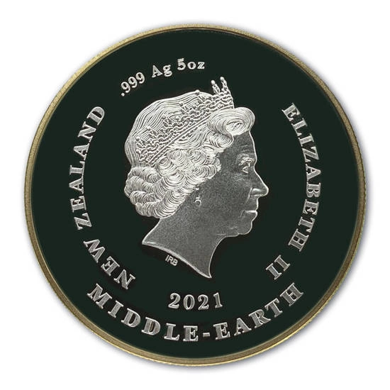 Rewers srebrnej monety przedstawia 9. postaci występujących w filmie Władca Pierścieni. Na rewersie znajduje się napis "THE FELLOWSHIP OF THE RING 20TH ANNIVERSARY". Dodatkowo na rewersie znajduje się informacja o wartości nominalnej waloru. Za projekt odpowiada Sacha Lees.