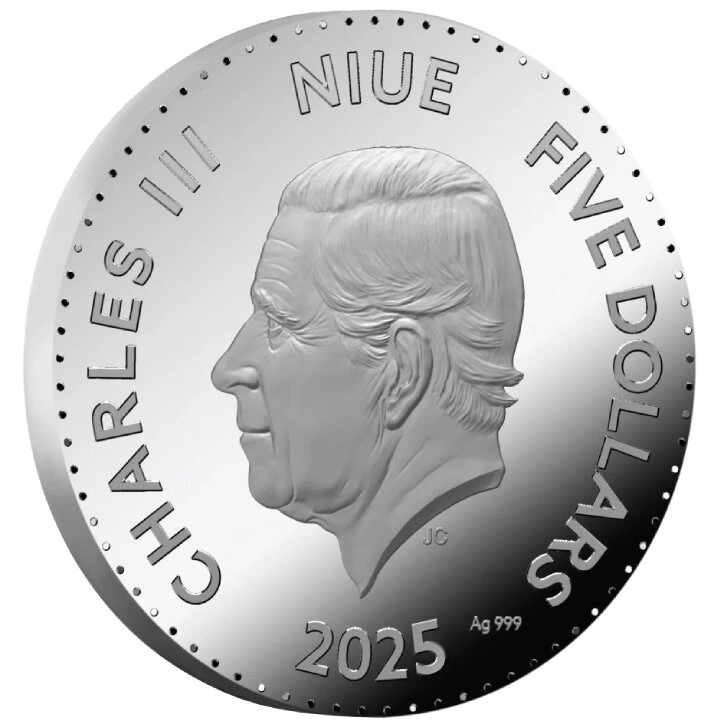 Awers srebrnej monety prezentuje podobiznę Króla Wielkiej Brytanii Karola III, "NIUE" wraz z informacją o wartości nominalnej, czystości kruszcu i roku bicia monety. Projektantem był Jody Clark.