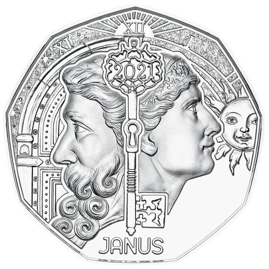 Noworoczna moneta ukazująca rzymskiego boga wszelkich początków Janusa to ciekawa propozycja pochodząca z renomowanej mennicy Austrian Mint. Srebrna moneta z 2021 roku została wybita ze srebra próby Ag.925, o wadze całkowitej 8,41 g(waga czystego srebra wynosi 7,78 g). Całkowity nakład Janusa wynosi 50 000 sztuk, gdzie każda moneta posiada gwarancję rządu Austrii oraz jest pełnoprawnym środkiem płatniczym na terenie kraju emitenta.